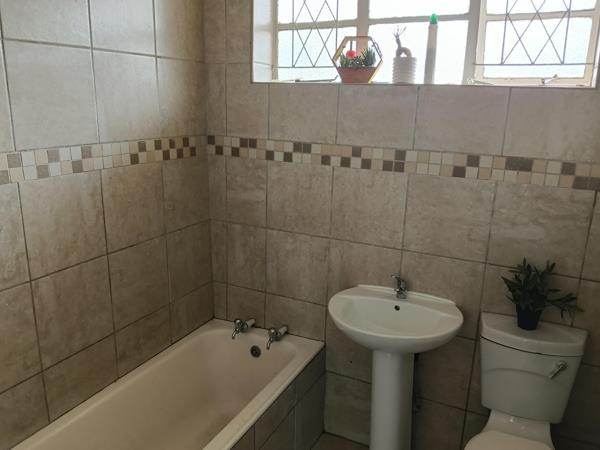 This recently renovated first floor flat is very well situated close to shops and schools as well as public transport. The spacious living area has a large entrance with a beautiful feature wall and can be used as a separate dining, reception area or study. The spacious lounge is open and airy with beautiful PQ floors and leads to the enclosed, tiled balcony which makes a perfect second bedroom with its large windows and spectacular views. The main bedroom is large with lots of cupboard space and both bedrooms have large windows. The kitchen has beautiful, fitted cabinets and a freestanding four plate stove and is tiled to the ceiling. The bathroom has a bath and toilet with a basin and is also beautifully tiled to the ceiling. The entire unit is very well kept. There is a security gate to the unit and access control to the complex which is very well maintained and neat. The unit also has a carport and remote controlled gate for vehicle access. The complex buildings and gardens are well kept and maintained. The complex is small and intimate, and neighbourly.