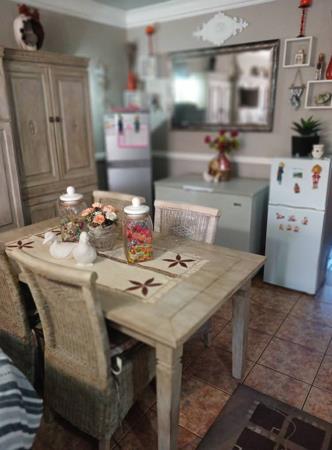 From the lounge, step out onto a charming covered patio, perfect for morning coffee or evening relaxation. The outdoor entertainment area features a built-in braai and overlooks a lush, expansive gardenperfect for hosting family gatherings or summer parties.
