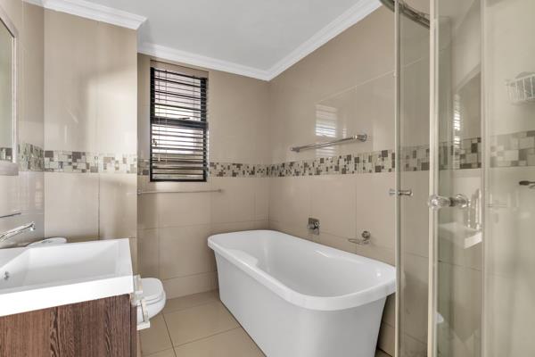 The main bedroom is well-sized, with a lovely view of the leafy garden and both bedrooms have loads of cupboard space and ceiling fans for year-round comfort. The Full bathroom has beautiful clean finishes with a modern tub and impressive separate shower.