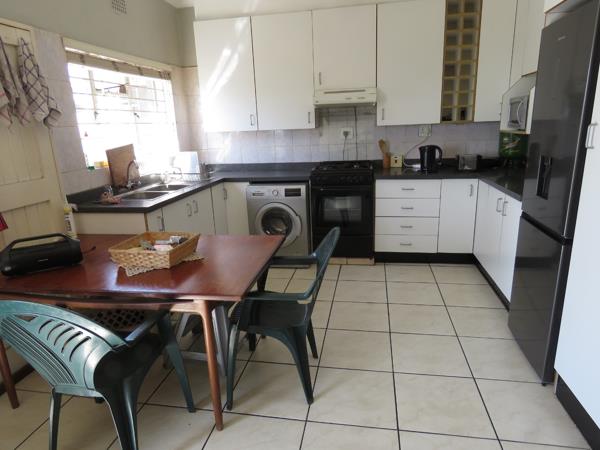 Inside, the property features an open-plan layout, enhancing the flow between living spaces. The spacious lounge area benefits from abundant natural light and is finished with easy-to-clean tiled flooring. The U-shaped kitchen is a highlight, boasting modern white cabinetry, granite countertops with gas stove, place for washing machine. A large window above the double sink provides ample light, and a dedicated dining area is conveniently situated within the kitchen.