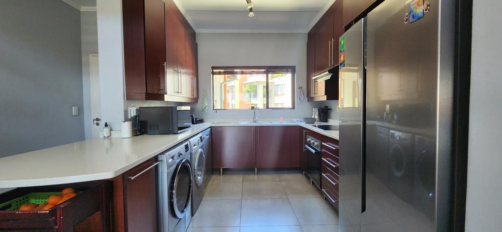 Enjoy two bedrooms conveniently located on the kitchen level, complete with generous cupboard space. The stylish kitchen is designed for both function and flair boasting a wine rack, spice drawer, extended breakfast nook, and space for three appliances plus a double-door fridge.