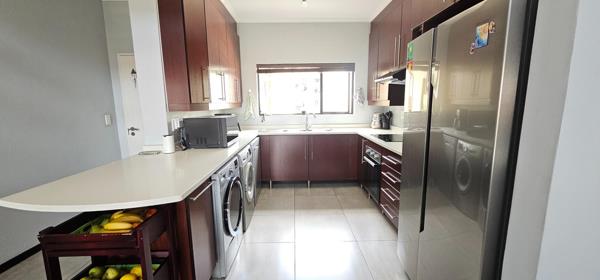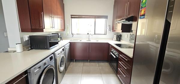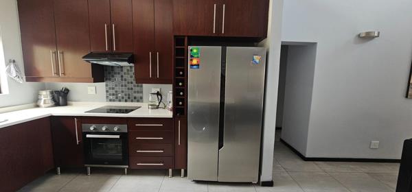 Spanning 151m, the home welcomes you with a beautifully designed open-plan kitchen featuring three appliances and a double-door fridge. The spacious dining area flows onto a balcony with a built-in braai and convenient extra cupboard space ideal for entertaining.