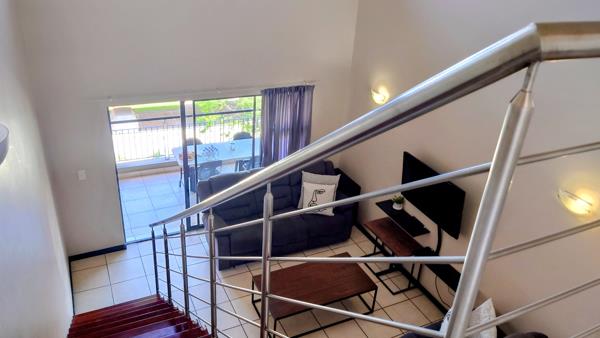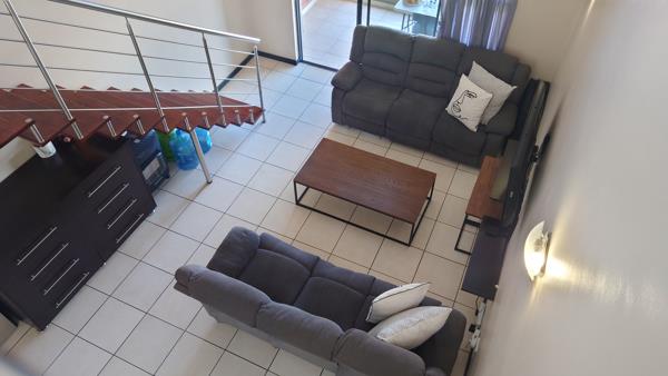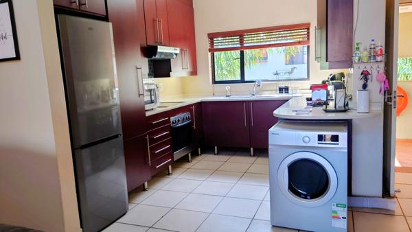 Upstairs, a large TV lounge, now converted with dry walling into a 3rd bedroom, opens into a versatile space that can serve as a study or entertainment area, leading out to a magnificent patio complete with a built-in braai and scenic views. Bright and airy throughout, this inviting home is ready for its next owner to move in and enjoy. Two carports and visitors parking close to the unit. Pet friendly with permission. The complex offers excellent security and a host of lifestyle amenities, including a gym, pool, squash court, and a beautifully appointed clubhouse.