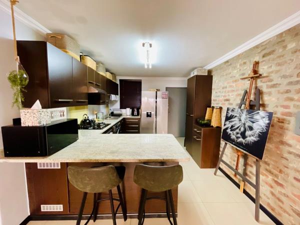 Discover an exquisite opportunity for refined living within a prestigious security complex in Solheim, Germiston. This sophisticated 82 square meter residence offers a harmonious blend of comfort and elegance, meticulously designed for the discerning homeowner. A welcoming lounge seamlessly transitions into a dedicated dining area, creating an ideal environment for gatherings and relaxed living. The well-appointed kitchen, central to the home''s design, promises culinary delight.