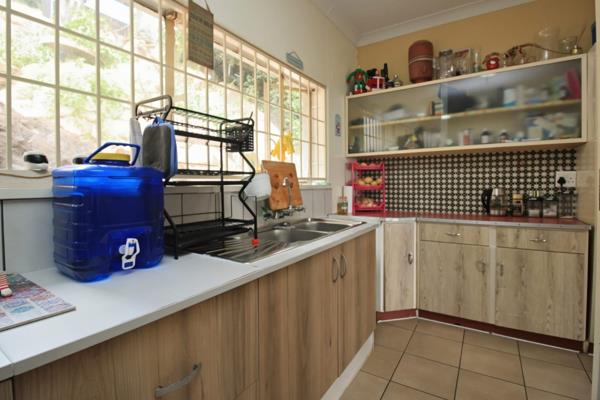 The backyard extends up the hillside, providing a unique outdoor experience with stunning views. Enjoy the dedicated braai area or relax on the natural rock setting while taking in the fresh air and tranquil surroundings.