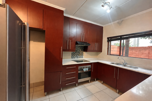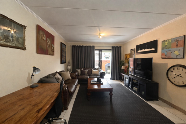 The layout is clean and practical. An open-plan living area flows directly onto a covered patio with a built-in braai, extending into a private garden that gives you that house feel without the upkeep. Its the kind of space that works just as well for pets as it does for relaxed weekends or everyday living.