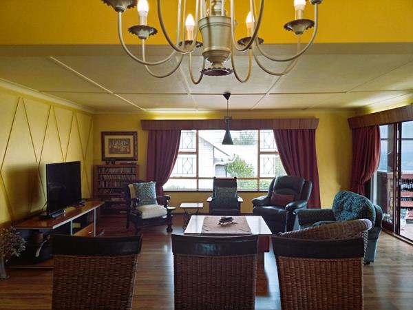 The home includes three well-appointed bathrooms, with the main bedroom featuring a convenient en-suite. Additional features include a second kitchen, a laundry room, and a dedicated home office ideal for modern living. A stylish bar area and a covered entertainment space with a built-in braai make entertaining effortless.