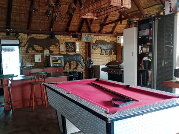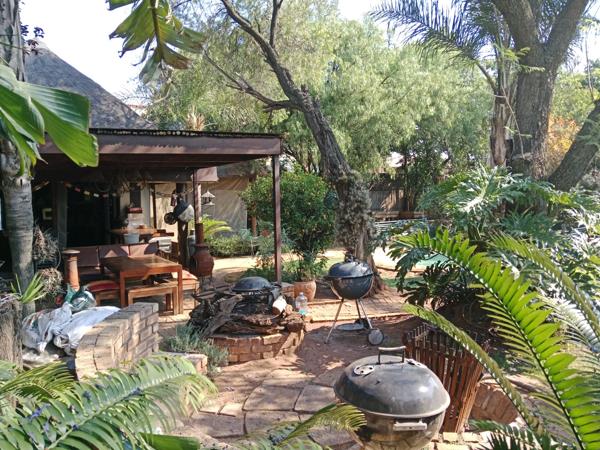 The back garden area is truly an oasis. Here you will find a private entertainment area with a whopping 52 sqm immaculate thatch lapa with a full fitted kitchen, electrical lights and plug points, plumbing for washing up, space for fridges and freezers, tables, chairs and sofas and various items for entertainment. A double size jet master braai is perfect for various outdoor cooking.
