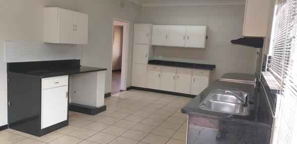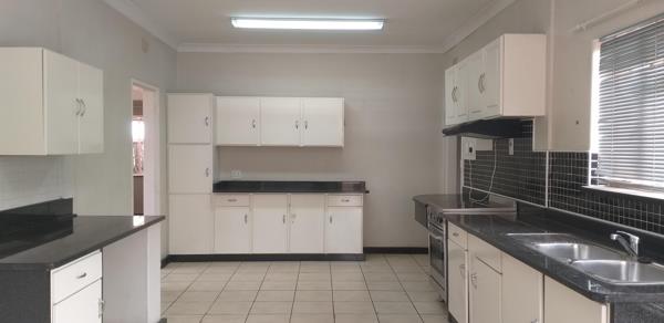 The kitchen is spacious, has beautiful with ice-white cupboards and granite tops, there is much space for additional cupboards if required. There is enough space for a double door fridge, water appliances and pantry. The kitchen is fitted with a modern electric stove and has a double sink. In one simple sentence this kitchen is functional with massive room for creativity.
