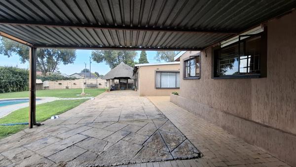 Exceptionally neat property. As one enters this property one is met by rolling lawns and neat manicured gardens. Behind high walls is a secure carport, beautiful sparkly private pool and plenty space for children and pets to play.