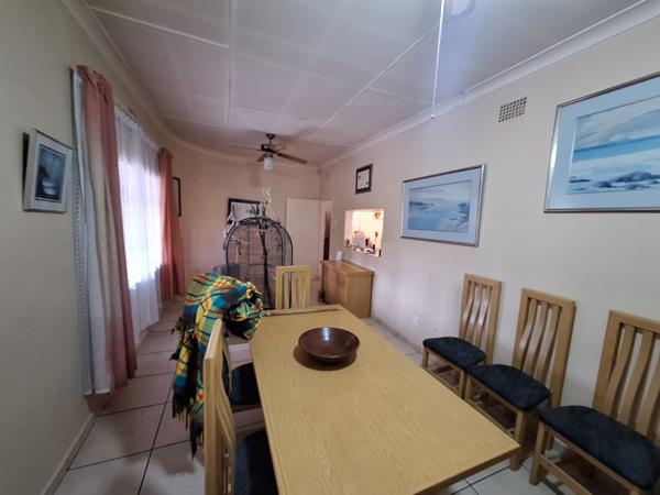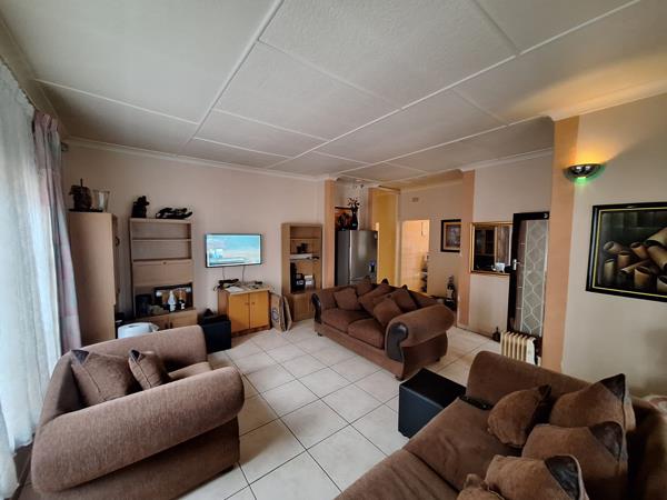 Set on a spacious 595 m2 stand, the property offers 3 well-sized bedrooms and 2 bathrooms, including a main en suite. The tiled interiors are complemented by a sunlit lounge, a separate dining room, and a fully fitted kitchen featuring Formica countertops and laminate cabinetry, ideal for family meal preparation and entertaining.