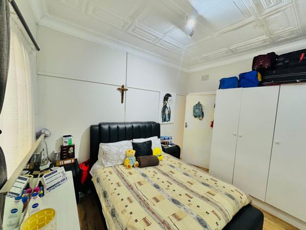 The second bedroom also provides generous space, complete with fitted cupboard, a double bed, elevated ceilings, and laminate flooring.