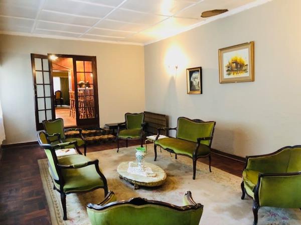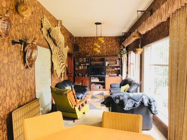 Discover a substantial family home in the established suburban area of Lambton, Germiston, offering generous living spaces and a large erf of 2468 sqm. This impressive 610 sqm residence presents a unique opportunity for those seeking a property with character and significant potential for modernization. The interior boasts an inviting entrance hall leading to multiple reception areas, including two spacious lounges, a dedicated dining room, and a family TV room, providing ample space for relaxation and entertaining. Unique features such as extensive dark wood paneling, beamed ceilings, and pressed ceilings add a classic touch, while a built-in bar area promises memorable gatherings.