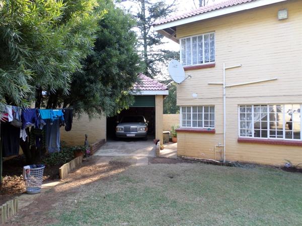 DOUBLE STOREY HOUSE WITH ENTRANCE HALL, LOUNGE, DINING ROOM, STUDY, MELAMINE KITCHEN, 4 BEDROOMS OF WHICH 2 HAVE EN SUITE BATHROOMS AND ALL HAVE BIC, A TOTAL OF 3 BATHROOMS, A GUEST TOILET. THE OUTSIDE HAS 2 GARAGES, 1 GARAGE BEING A DRIVE THROUGH, A LARGE LAPA SET IN A NICE GARDEN.