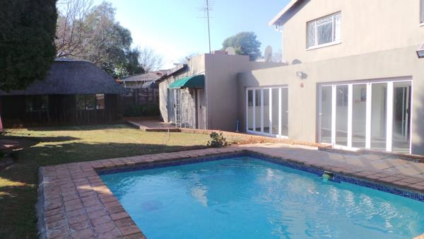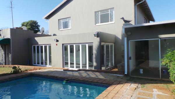 Lovely spacious home for the extended family. This home has 5 large bedrooms with lots of cupboard space, 2 spacious modern bathrooms, 2 separate toilets, large open plan lounge ,dining room, modern kitchen with granite tops, laundry, office space and large sunny enclosed entertainment area. The outside has a lovely manicured large garden , pool, wendy house, a gym or office, a 2 bedroom cottage, lounge, kitchen and bathroom. The property has alarm system, 2 access automated gates and cctv cameras . The property is close to all major schools, shopping centres and all major highways.