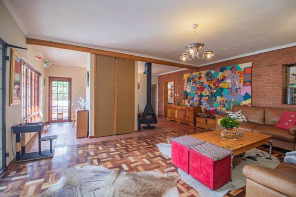 The home welcomes you into an inviting open-plan lounge and dining area, complete with a fireplace and face brick feature walls, opening onto a private, lush garden an ideal space for relaxation and family gatherings. The restored parquet flooring and handmade terracotta tiles add warmth and character, complemented by wooden window frames and doors throughout.