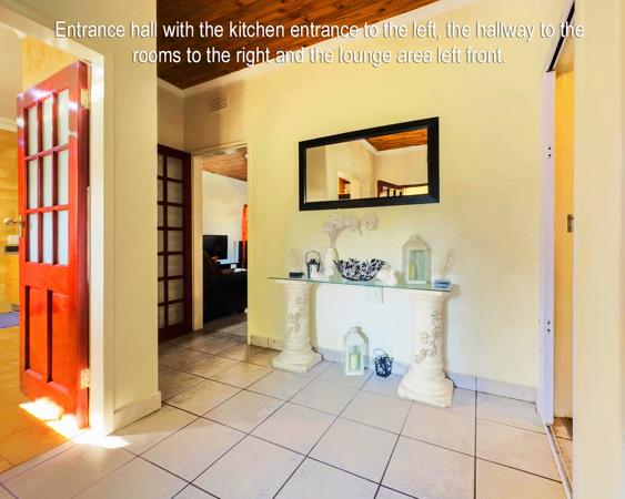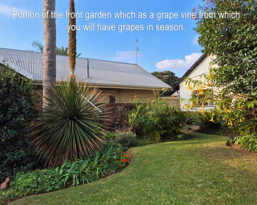 The property boasts a well-established large private garden, a sparkling pool and is completely fenced. The property is completely pet friendly. There is a small Wendy house, and a tool shed on the property as well. The swimming pool has a fitted pool cover so the pool can be covered during the winter, saving on not only electricity as the pump needs to be on less, but also chemicals. There is a lovely big avocado tree as well as a grape vine in the front yard, both giving yearly fruit. There is an electrical fence around the property. The entrance gate to the property is motorized.