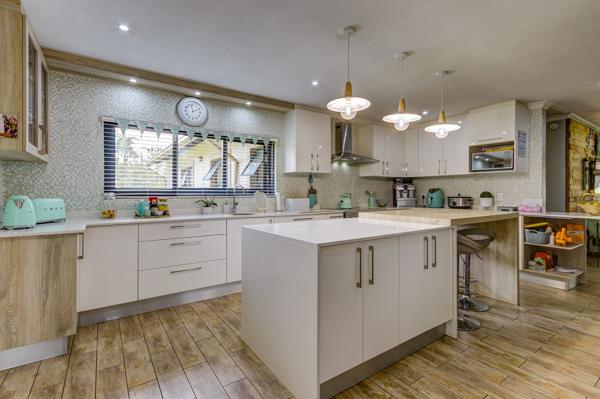 Extremely large picture perfect kitchen with gas stove, granite tops, pantry cupboards, separate scullery, Laundry and many more