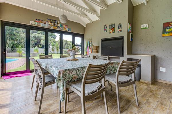 Enclosed Patio overlooking the beautiful landscaped garden, pool and Boma
