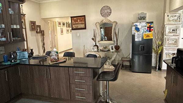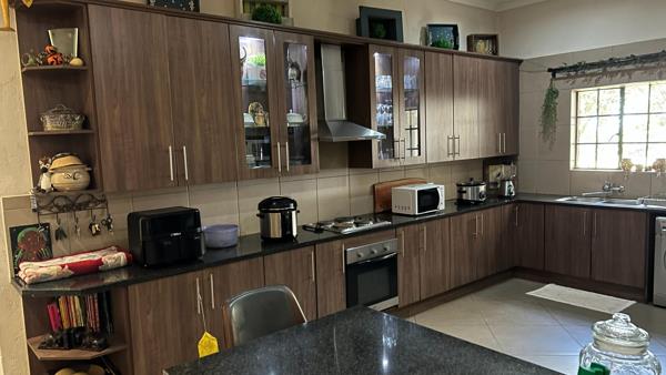 Many Cupboards in passage, tiled floors and Tiled roof as well as double garage with automated doors and 2 lock-up storage rooms.