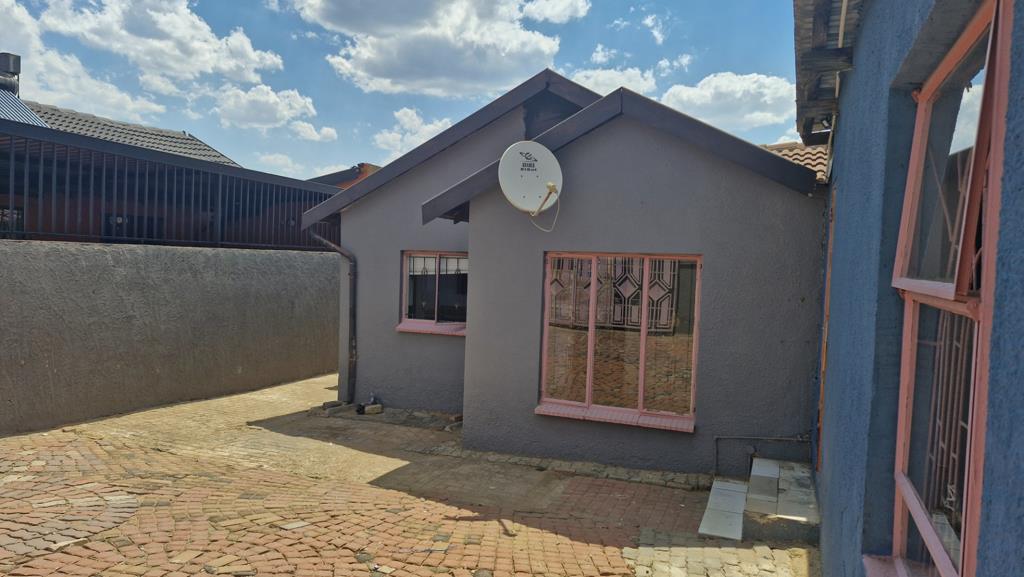 THIS NEAT THREE BEDROOM PROPERTY HAS A LOUNGEV, KITCHEN ,BATH AND SEPARATE TOILET ,ONE COTTAGE WITH TOILET AND SHOWER PLUS BIG SPACE AT THE BACK FOR FURTHER EXPANSION, JUST 2 MINUTES FROM MALL, HARAMBE BUS SERVICE , MACDONALDS, PLAZZA SHOPING CENTRE AND LERALA TRAIN STATION ALSO JUST 15 MINUTES TO MIDRAND AND KEMPTON PARK