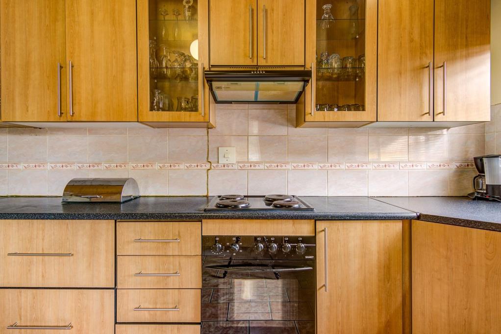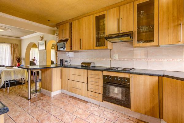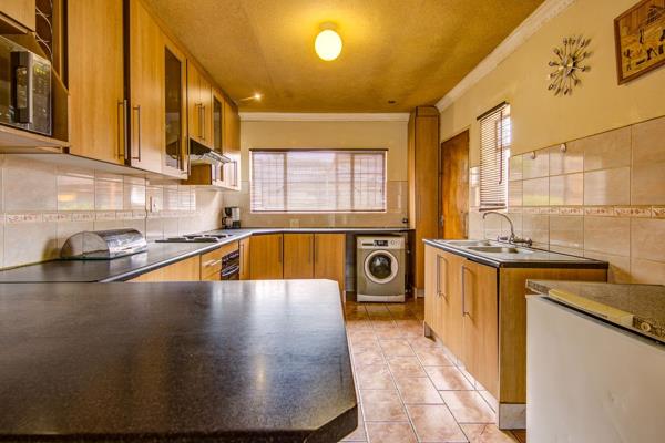 As you enter through the main front door, you are welcomed by an entrance hall to place beautiful family pictures, then an open plan large dining room to fit an 8 seater dining seat and a server for all those special dinners, and a lounge for relaxing. The kitchen is so spacious to fit the whole family. It offers lots of cupboard space, stove with oven, double sink, a connection for washing machines and space for a double door fridge and a freezer if you have one.