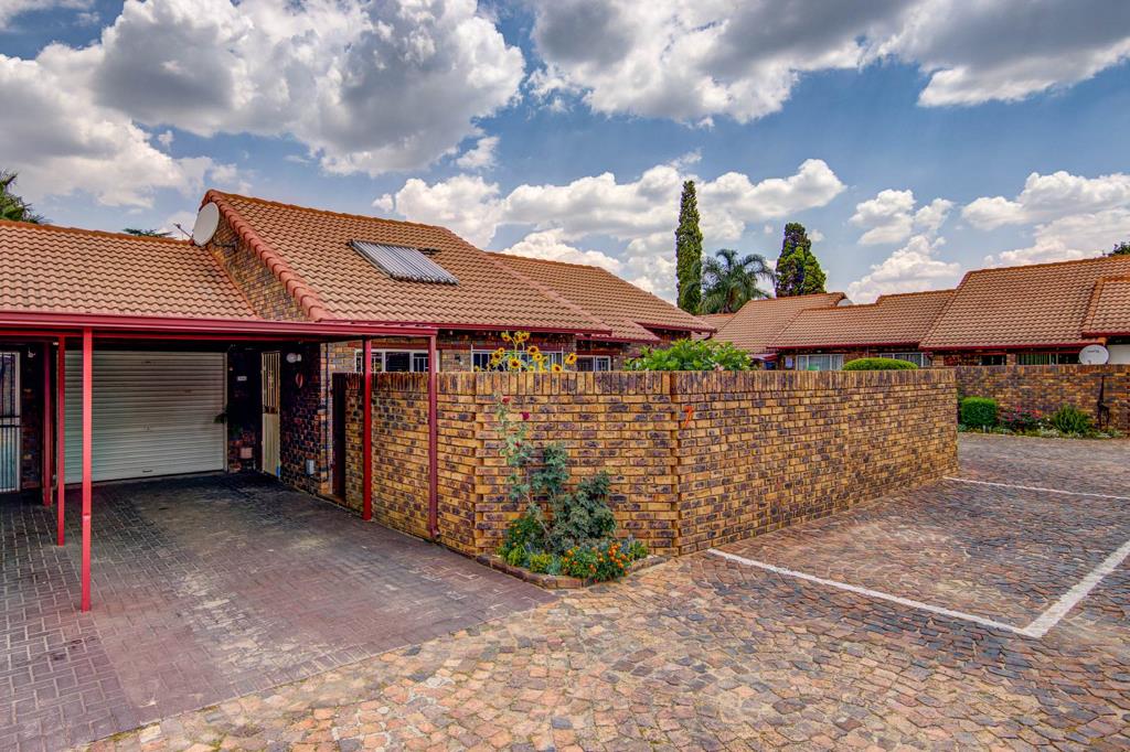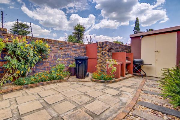 Neat and established private garden with a tiled covered patio. Built-in braai and tool shed / store room. 1 Garage with roll-up door and 1 carport. Burglar bars, security gates and in enclosed boomed off area. Pet friendly unit. Close to Mooifontein Primary school.