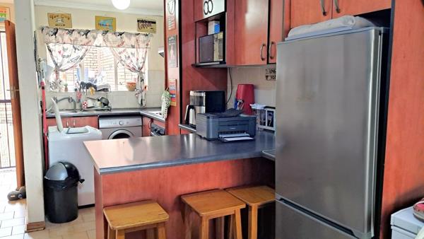This neat 2-bedroom, 1-bathroom townhouse offers comfortable and convenient living. The open-plan kitchen and lounge create a welcoming living space, with the kitchen featuring a double sink and undercounter oven. The home is fully tiled throughout, and the bathroom includes a shower-over-bath setup.