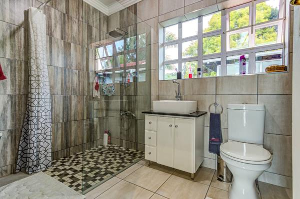The substantial 999 sqm erf provides a magnificent canvas for outdoor living, featuring a lush garden and a sparkling swimming pool, ideal for enjoying the South African climate. A single garage, ample driveway parking, and an inviting awning enhance the exterior appeal, while the pet-friendly policy ensures a complete family lifestyle.