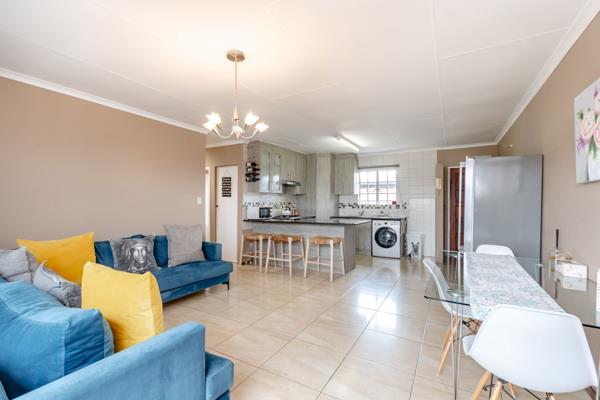 Neat 3-Bedroom Townhouse with Private Braai Area. This well-maintained 3-bedroom townhouse offers comfortable and easy living in a secure environment. The home features a welcoming kitchen that flows seamlessly into a functional lounge, ideal for everyday living.