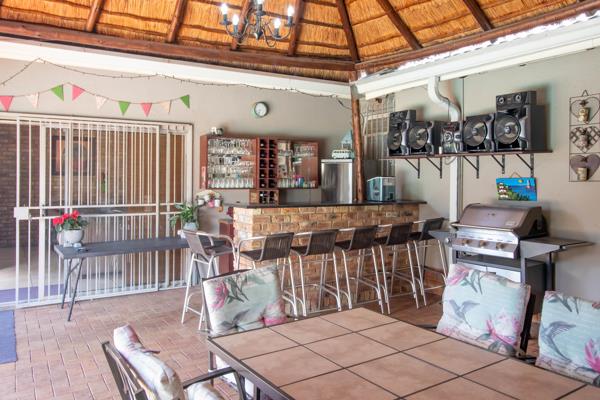 Enjoy a sparkling pool surrounded by a beautifully landscaped garden, complete with carports accommodating four vehicles. The spacious lapa is perfect for entertaining friends and family. Inside, you''ll find a generous kitchen with a separate pantry that can easily fit a washing machine, tumble dryer, and dishwasher. The open-plan lounge and dining area creates a warm and inviting space to unwind after a long day.