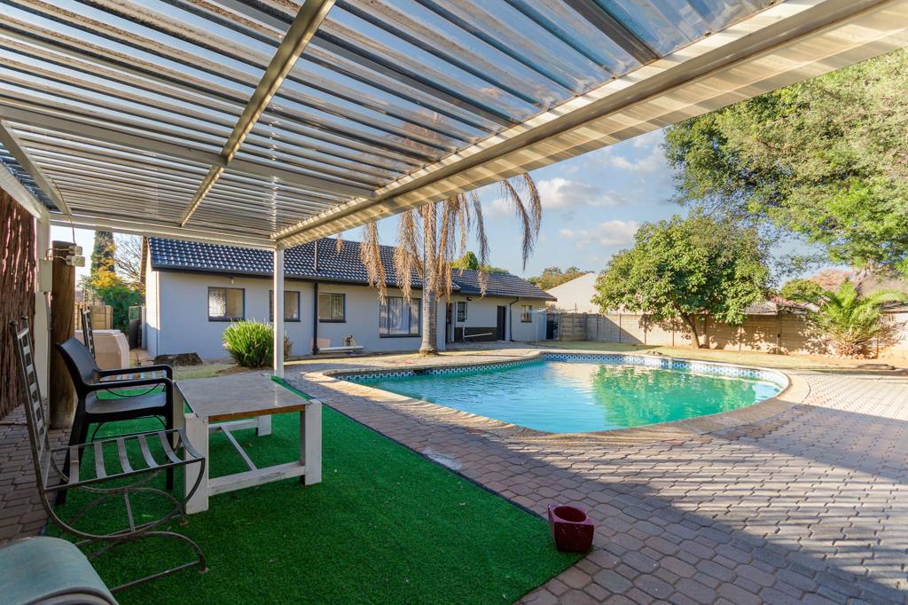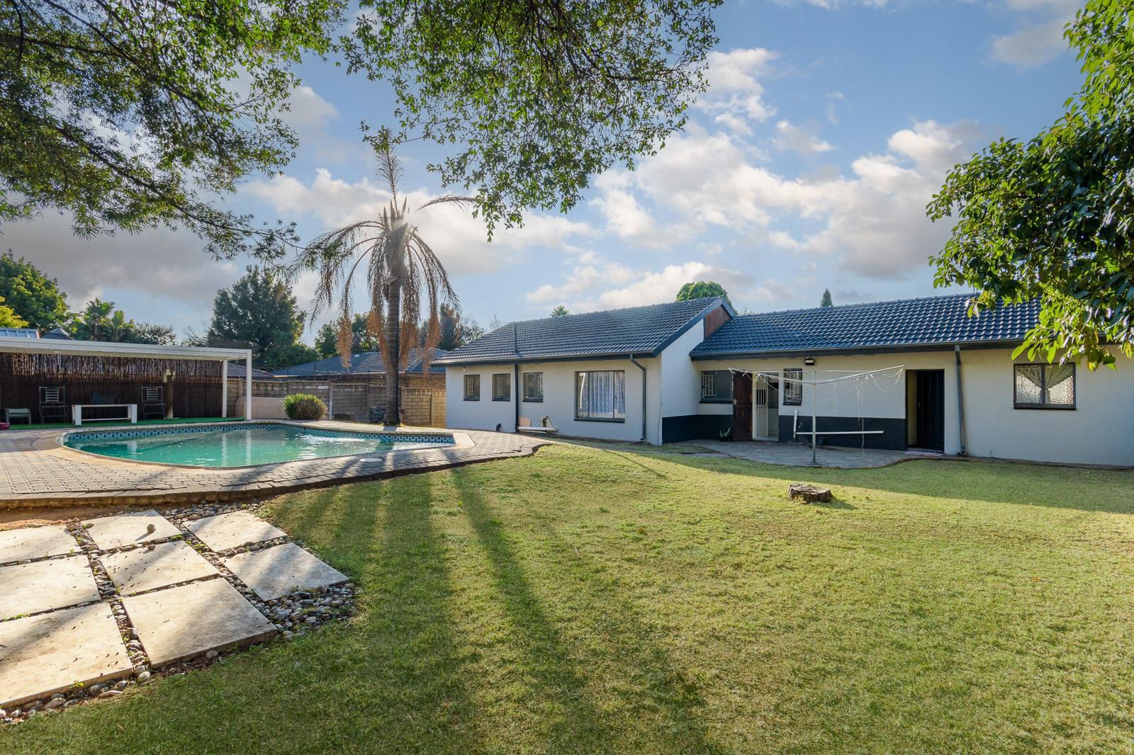 Outdoors, the property features a sparkling swimming pool and a dedicated braai area, creating the perfect setting for outdoor entertaining and summer enjoyment. Additional features include a double garage, a carport, and secure living within a well-maintained gated community, offering peace of mind and a strong sense of community. Conveniently located close to shopping centers and reputable schools, this home presents an excellent opportunity to enjoy secure, spacious family living.
