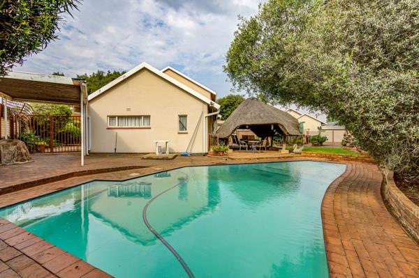 More extras: Servants room with bathroom. Double garage with automated wooden doors. 3 Carports with one big enough to lock up your caravan. Large marbelite pool. Thatched lapa. Strong borehole (94m). Manual sprinkler system. Established garden.