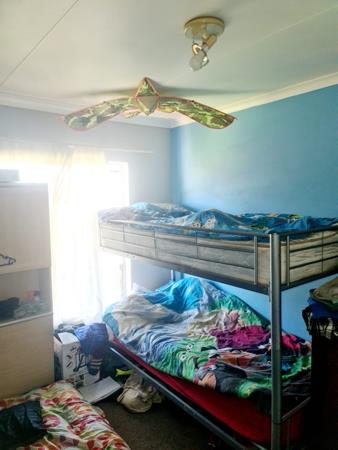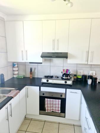 Kitchen: Breakfast Counter, Melamine, Open Plan, Tiled Floor, Tiled Walls