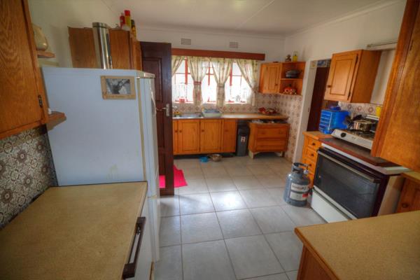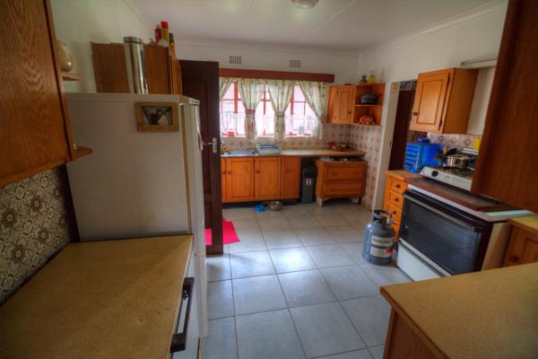 Large Kitchen with melamine cupboards and tiled floors perfect for the home chef.