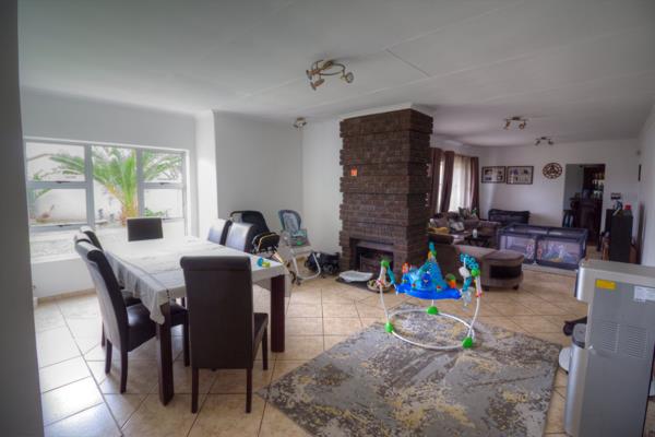 Spacious lounge with fireplace & open-plan dining