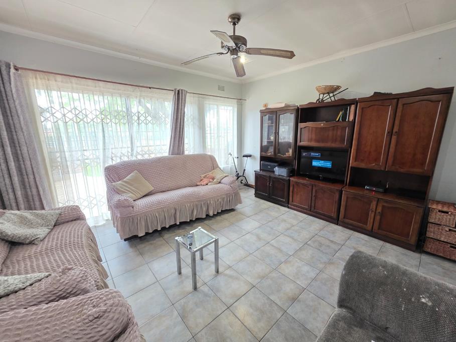 Step inside to find a spacious interior designed for comfortable living. The inviting lounge and dining areas are bathed in natural light from large windows, complemented by tiled flooring and ceiling fans. The functional kitchen, featuring ample wooden cabinetry, generous counter space, a built-in oven, and a hob, seamlessly connects to the dining area via a practical breakfast bar, ideal for family meals.