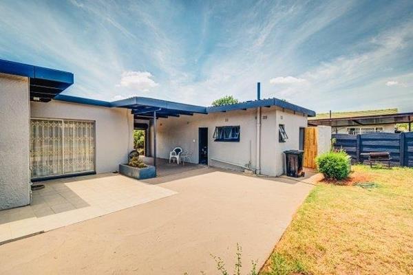 Freshly painted light and spacious home which is tiled throughout consisting of 4 bedroom, 2 bathroom, open plan lounge with sliding doors to outdoor patio and dining with a separate family room, upgraded kitchen and bathrooms. Sliding door off the lounge to a tiled patio in the back garden which has a lovely sparkling blue pool. Single staff room with a toilet, shower and basin conveniently situated behind the closed garage (nice flatlet opportunity) + a drive through hollywood garage. Solar lights in the garden. Huge stand size: 1,338m2