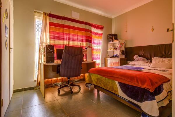 For added convenience, a separate laundry room with a double trough is located just off the kitchen, making household chores a breeze. The home is tiled throughout, providing a sleek, low-maintenance finish, while the four generously-sized bedrooms ensure plenty of space for the entire family. Three of the bedrooms feature built-in cupboards, offering ample storage.