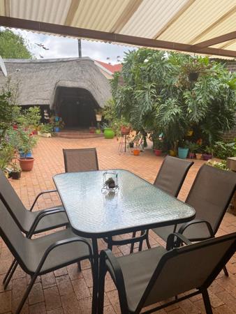 The outdoor area has a beautiful swimming pool surrounded by a landscaped garden, a large braai area and lapa for entertainment and relaxation.
