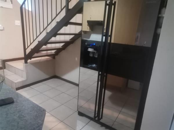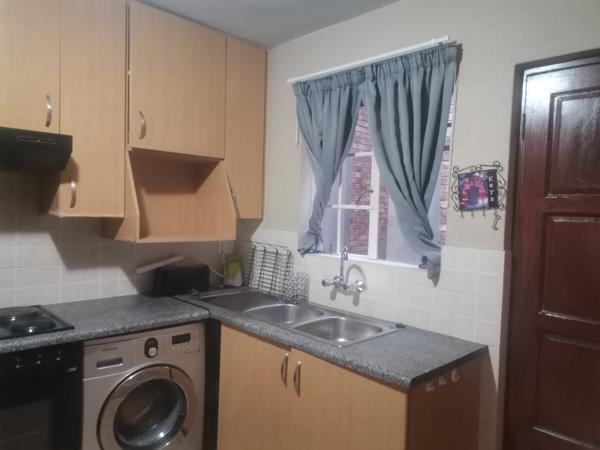 This neat duplex is located in a well-kept complex, offering 24hr security and controlled access. It offers 2 bedrooms with BIC, a bathroom upstairs, open plan lounge and kitchen, private garden and carport. The complex is located close to essential amenities. Utilities are based on usage and electricity is prepaid. Pets are allowed on request. It features