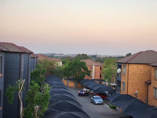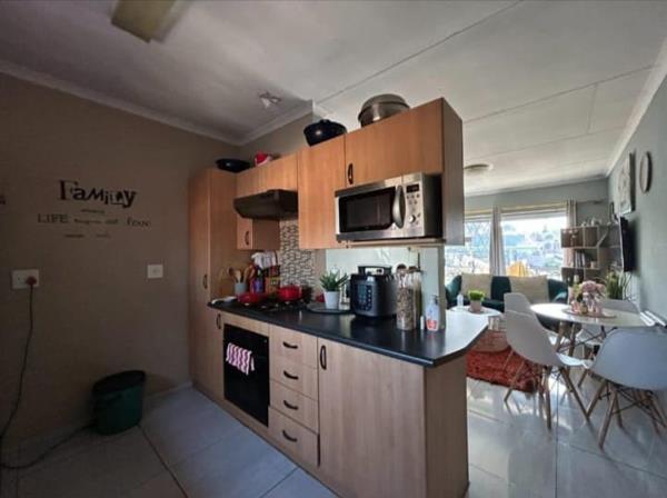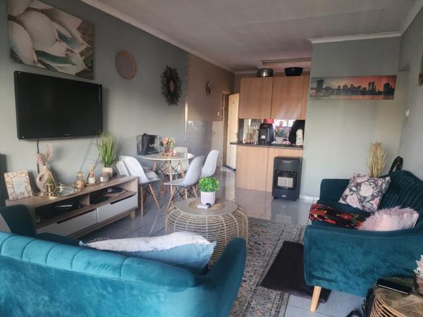 A two bedroom apartment with wall wardrobes all neat and tiled. kitchen with built-in cupboards, spacious living area and a bathroom.
