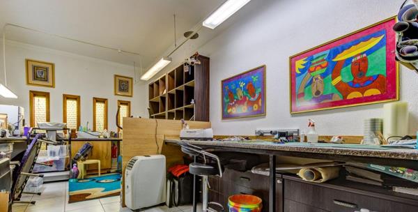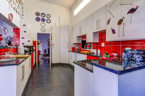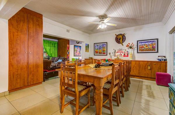 Main House: 4 bedrooms, 2 bathrooms, 5 garages, open-plan lounge, separate dining & family room, modern kitchen.