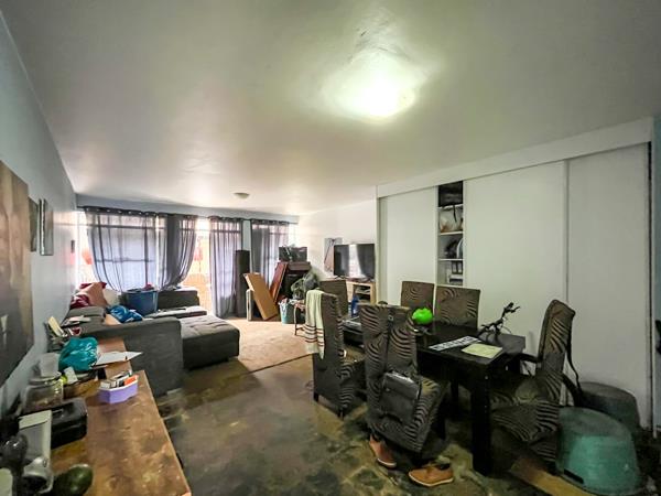 The open-plan lounge and dining area provides a flexible living space with plenty of potential to modernize and refresh.