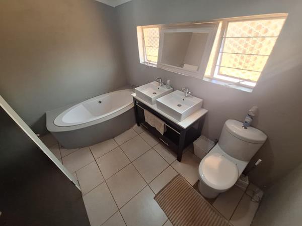 Upon entering, you''ll be welcomed by a spacious lounge and dining area, perfectly designed for relaxed family gatherings and entertaining guests. This area seamlessly leads to a hallway that connects three generously sized bedrooms, all equipped with built-in cupboards. Two of these bedrooms share a full bathroom, while the master bedroom boasts the luxury of a private en-suite.