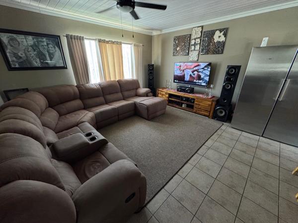 A welcoming lounge creates a relaxed environment for everyday living and entertaining. The home features three well-sized bedrooms, all with built-in cupboards, ensuring generous storage throughout. The main bedroom includes a private en-suite, while a second bathroom conveniently serves the remaining bedrooms.