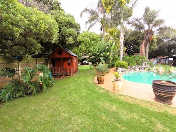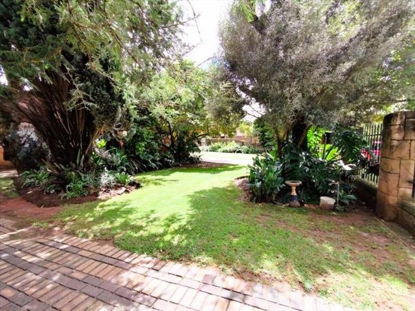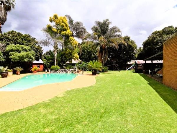 Step outside to a private oasis featuring a sparkling swimming pool and a lapa, perfect for entertaining or relaxation. The large garden is meticulously maintained, with paving and a driveway offering ample parking for up to eight vehicles, in addition to two garages. Practical amenities include a laundry room, storage facilities, staff quarters, outside toilet, and a wendy house. Pets are welcome, making this an ideal family home.