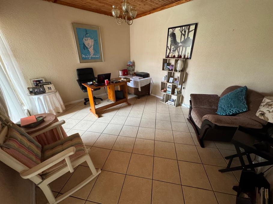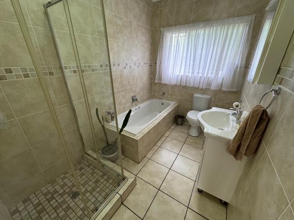 The home includes a lounge, dining room, and a cozy family room, providing ample space for relaxation and entertaining. There are three well-sized bedrooms with built-in cupboards BIC, while the main bedroom boasts a private en-suite bathroom. An additional full bathroom serves the rest of the home.