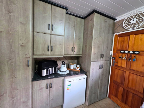 This lovely home offers three spacious bedrooms, all fitted with built-in cupboards. The main bedroom serves as a private retreat, complete with a modern en-suite bathroom and a stylish headboard included as part of the sale.