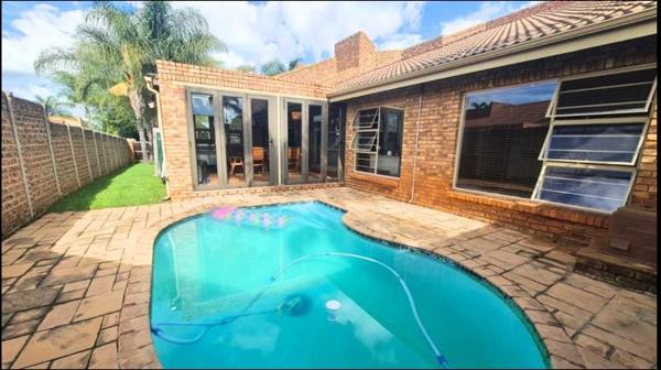 It consists of a master bedroom with an en-suite bathroom overlooking the pool with a second and third bedroom and bathroom for guests. A spacious open kitchen flows into the living space with a study nook and dining area. A comfortable lounge area with sliding doors leading out to the garden and a spacious patio with built-in braai & stacking doors opening up to the pool and garden, the perfect entertainment area all year round.